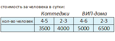 Дополнительное место в коттедже 3500 руб. / в VIP доме 5000 руб. |